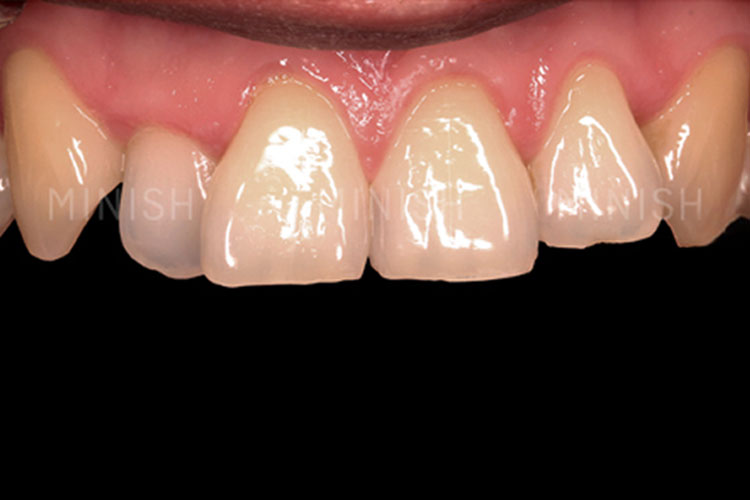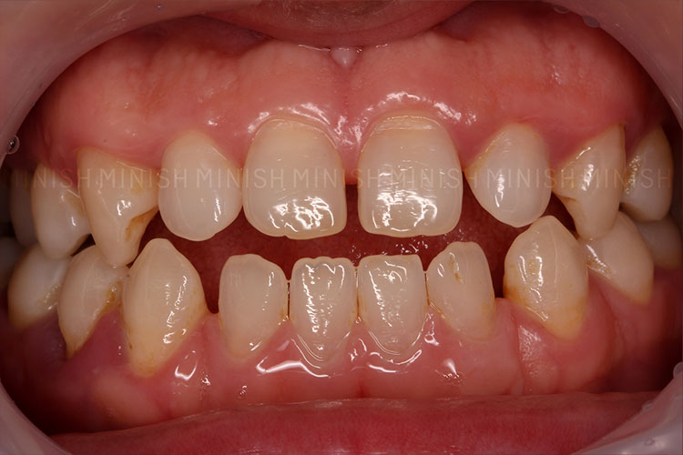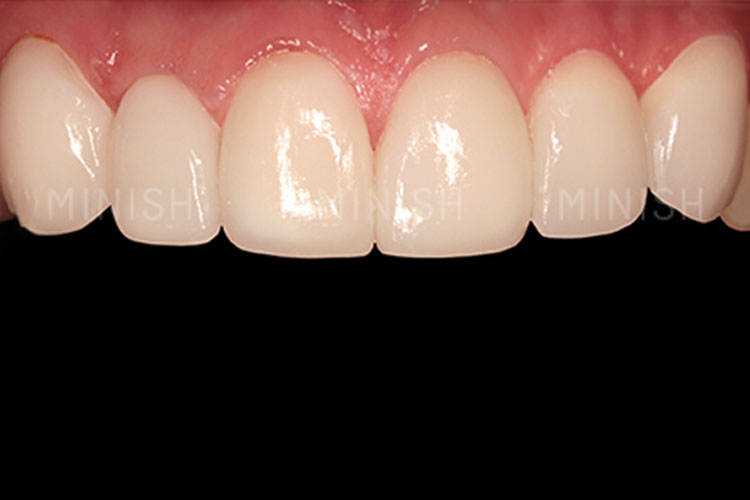 닳은 치아의 전체 배열, 색상, 질감 복구