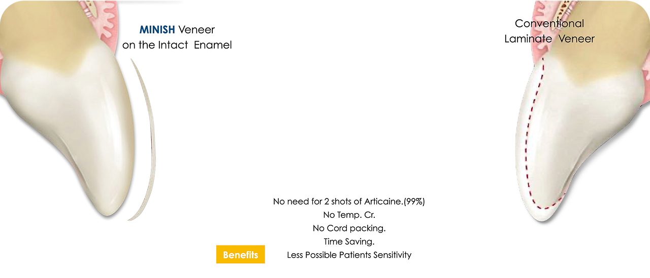 非常に薄くて自然な歯と似た物性のセラミック修復物を製作し、これを接着する技術を絶えず開発し、既存の歯科治療の限界を超え新しい可能性を開く旅でした。2014年デュアルミニッシュ、2015年ピンクミニッシュ、ミニッシュブリッジ、2017年臼歯ミニッシュの開発につながり、2017年にはミニッシュワンデーシステムを完成させました。
